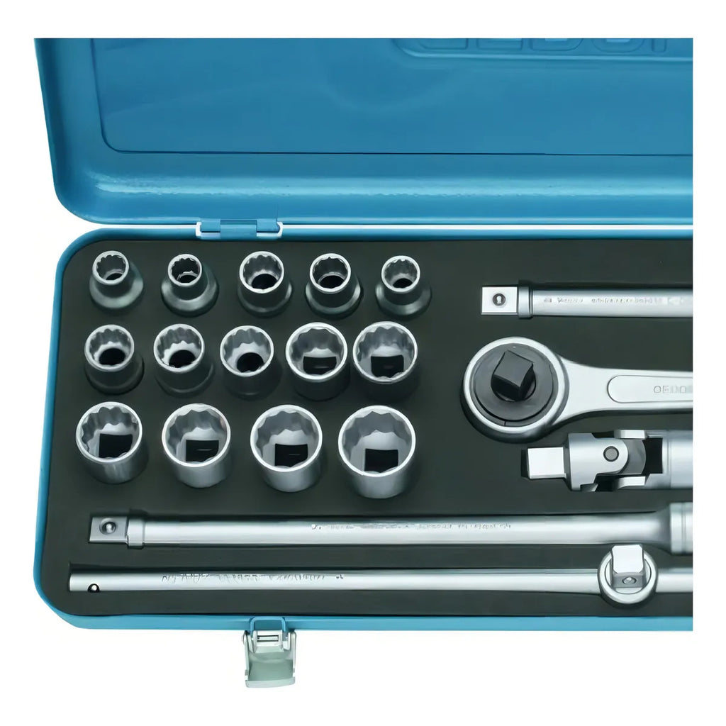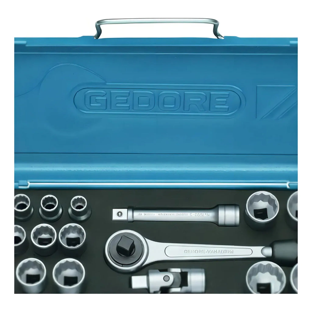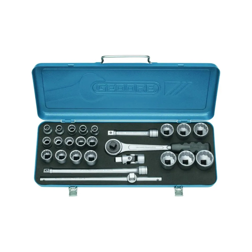 Jogo de Soquetes Estriados e Acessórios com 25 Peças 1/4" a 1.1/4" Encaixe de 1/2" - Gedore 015558