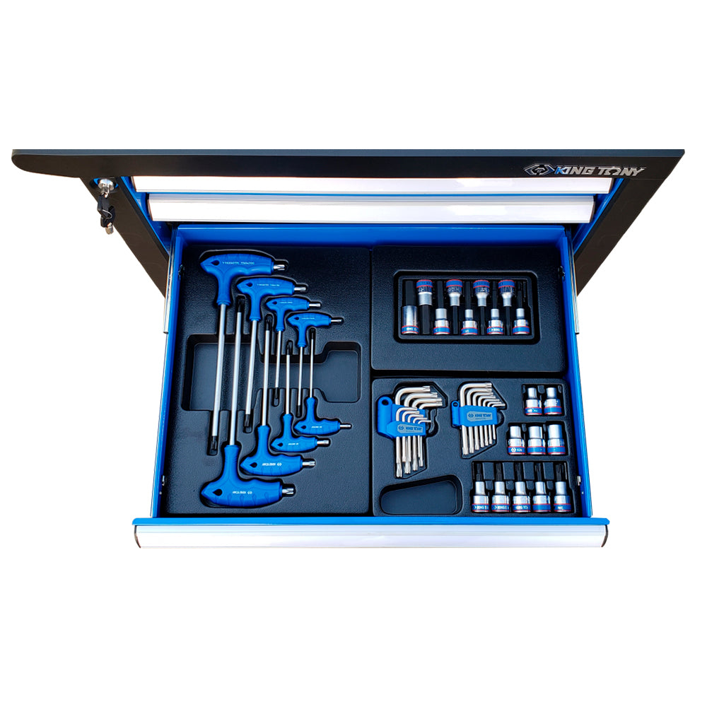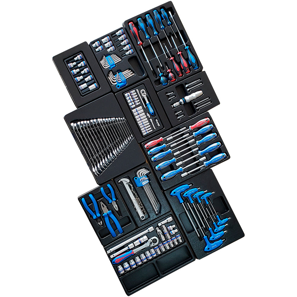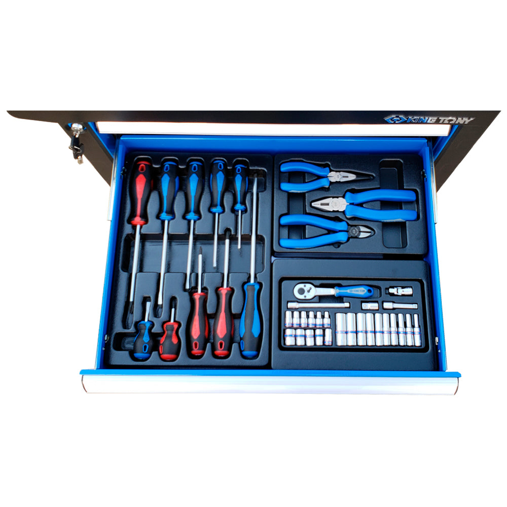 JOGO DE FERRAMENTAS COM 153 PEÇAS EM BANDEJAS ORGANIZADORAS PARA CARRINHO KINGTONY