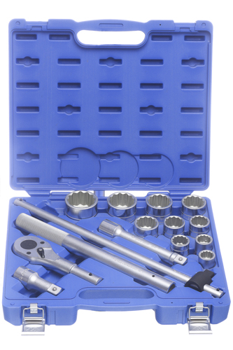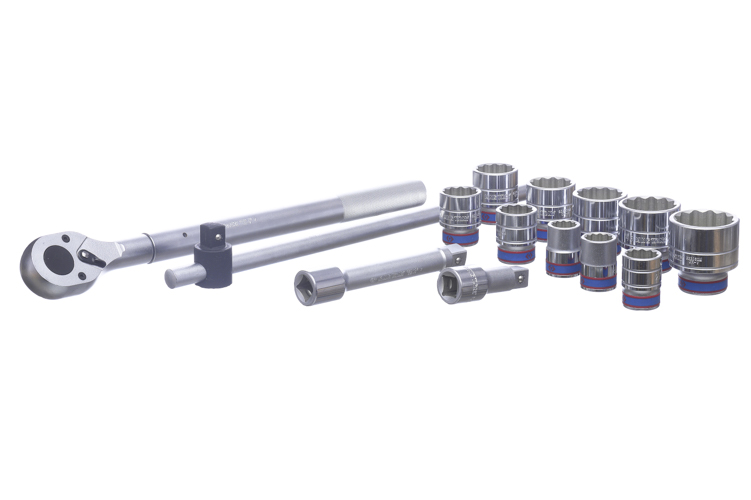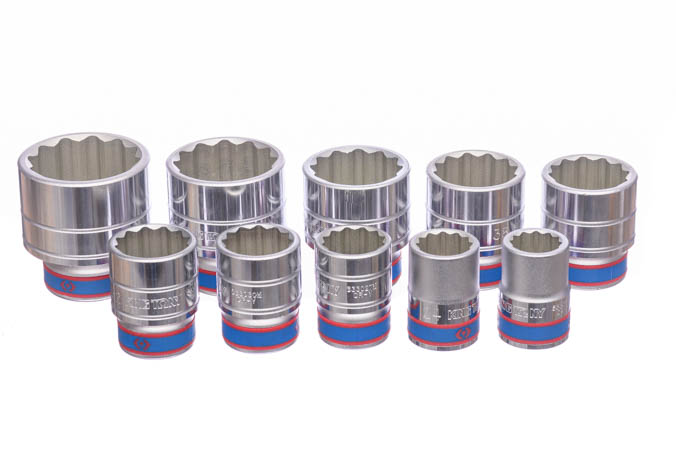 10 soquetes estriados curtos: 22, 24, 27, 30, 32, 36, 38, 41, 46 e 50 mm;