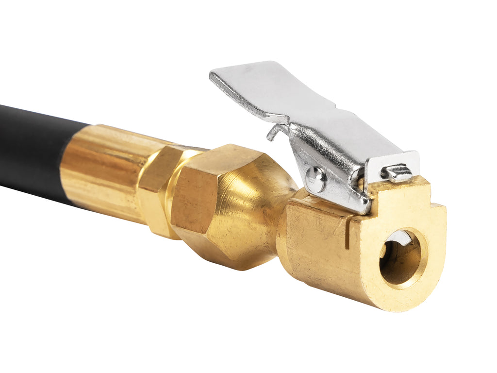 i) Mangueira em borracha com 1,8 m, conexão metálica roscada e bico para enchimento.