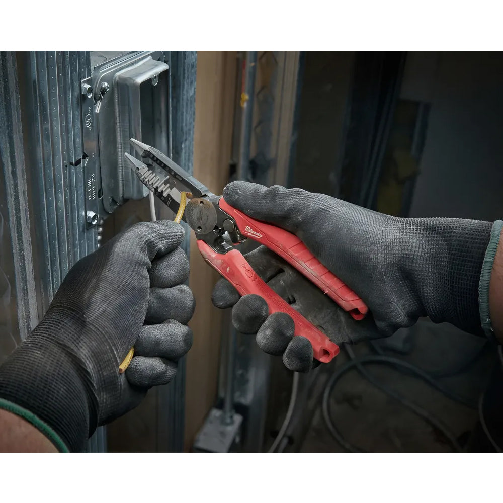 O Alicate de Combinação 6 em 1 Comfort Grip Milwaukee é uma ferramenta multifuncional projetada para máxima produtividade em instalações elétricas e mecânicas. Seu design inovador permite descascar fios, cortar parafusos, crimpar terminais e rebarbar tubos metálicos.