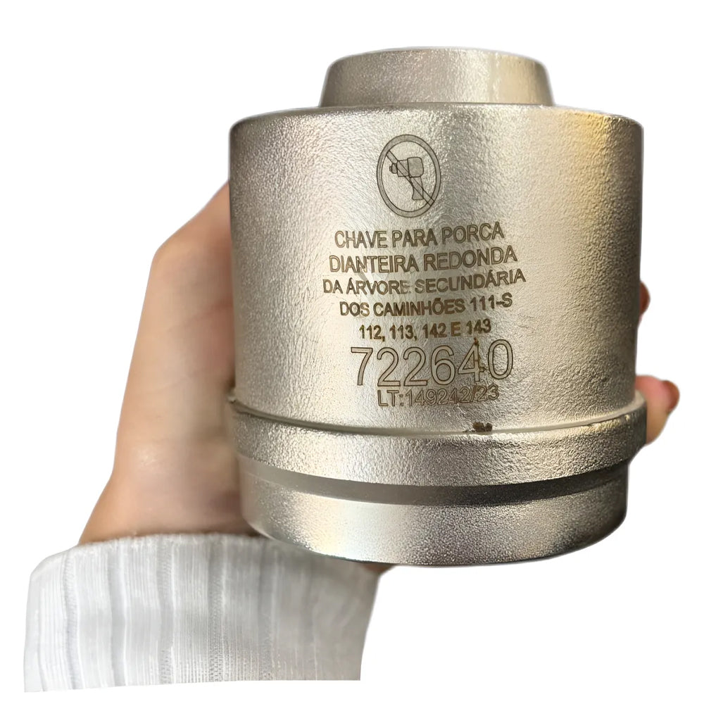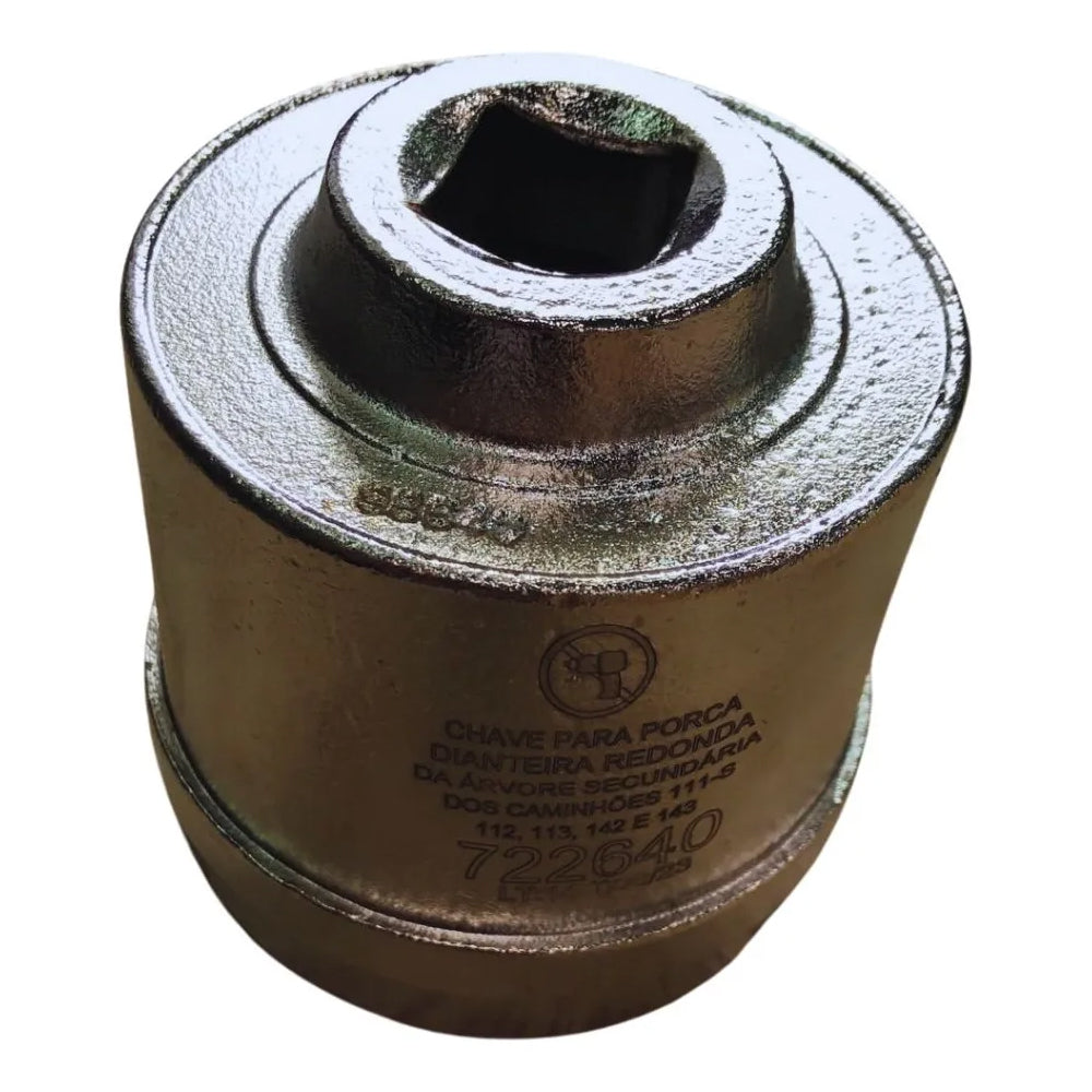Chave com encaixe de 3/4" para porca redonda dianteira com 4 ranhuras da árvore secundária da caixa de transmissão dos caminhões 111-S, 112, 113, 142 e 143.