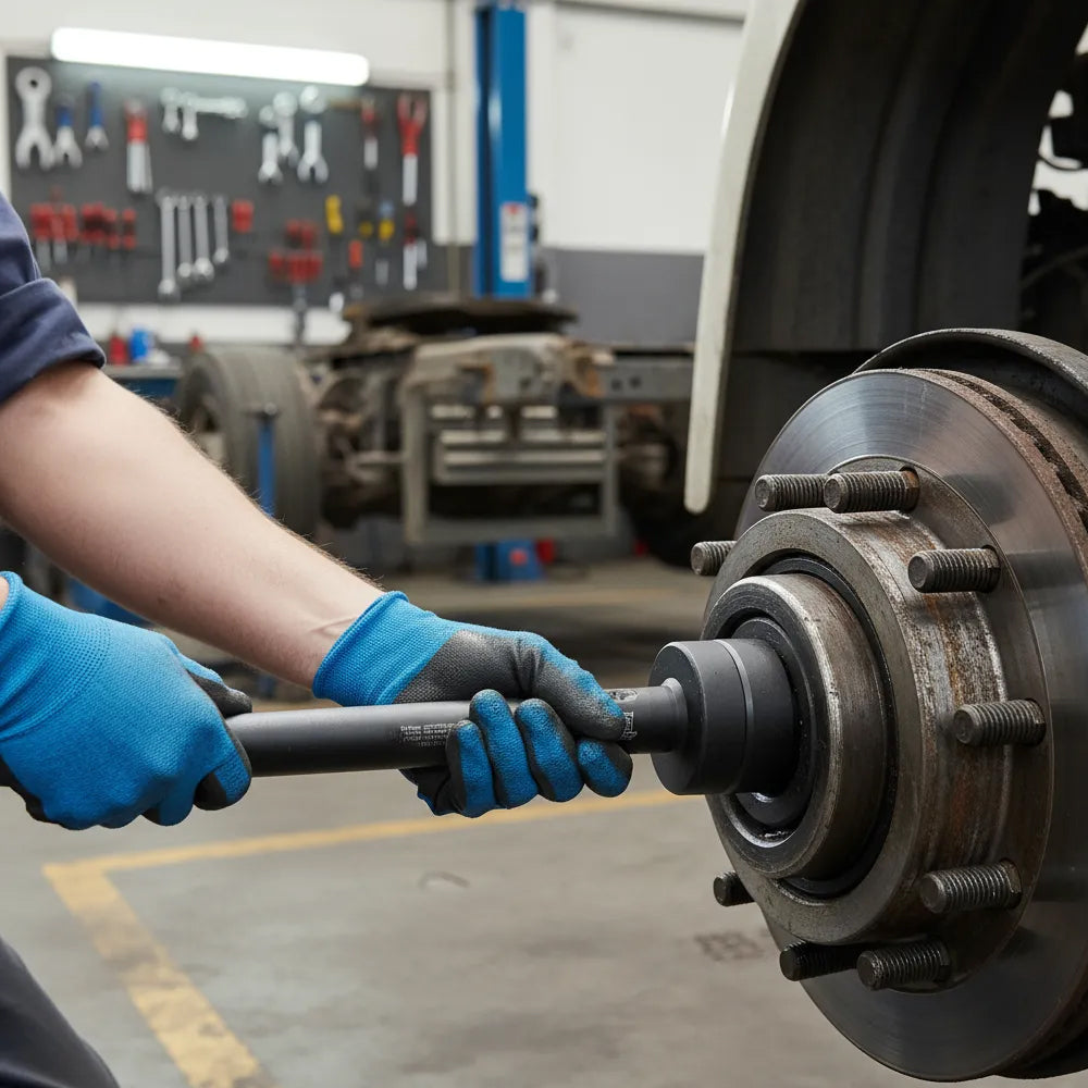 Chave sextavada de 100 mm e encaixe de 1" para porca do cubo traseiro grande (8 parafusos), montado com rolamento blindado, de caminhões Eurocargo 170 E-21, 170 E-22 e 230 E-22".