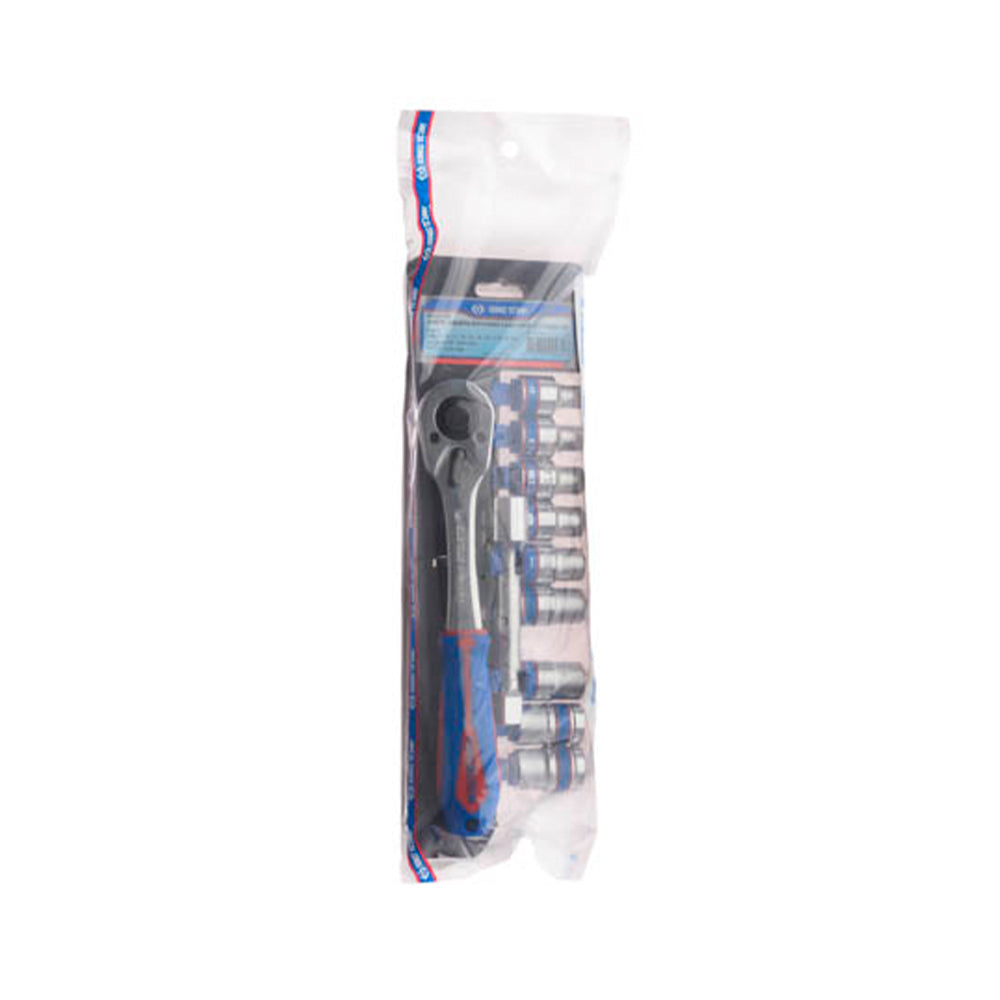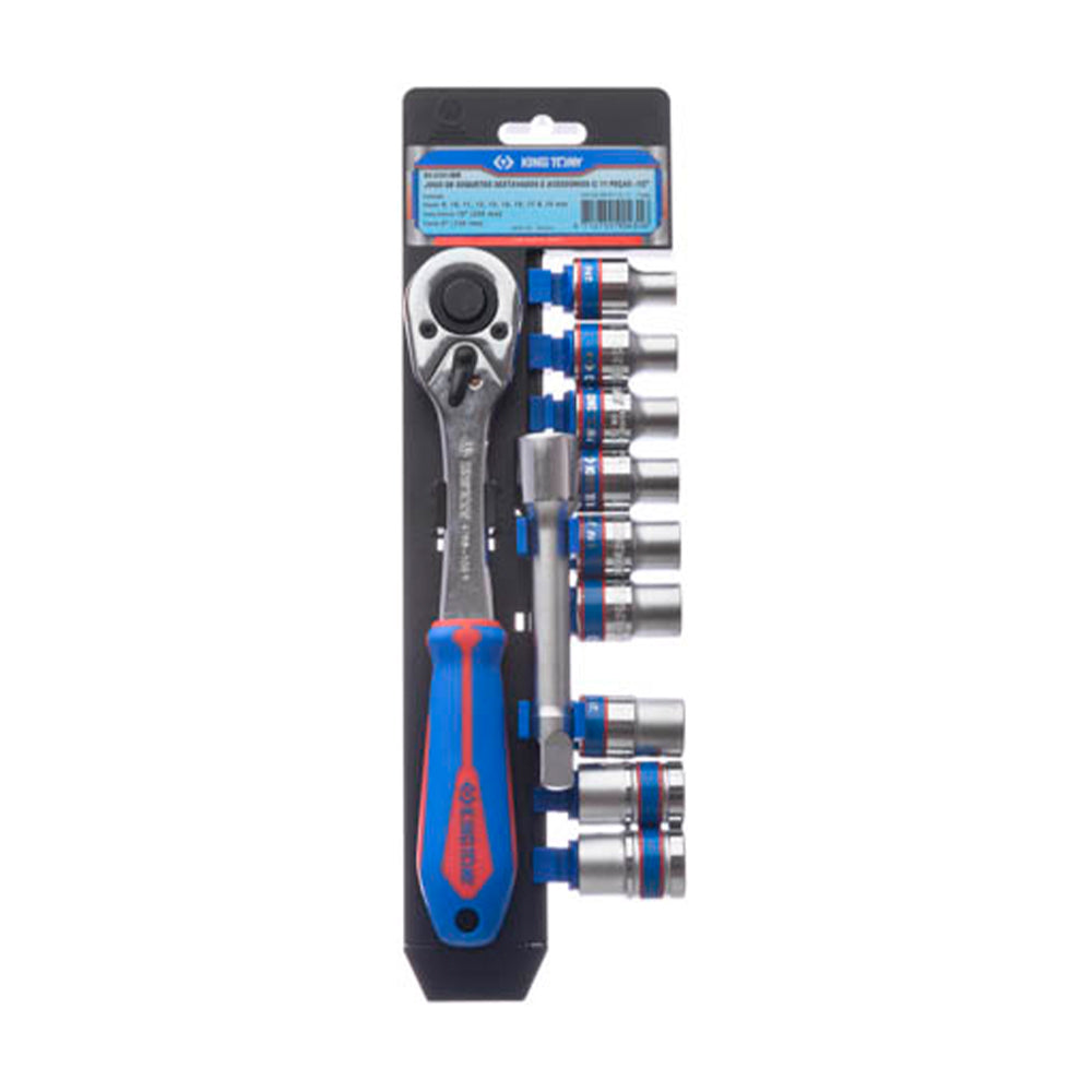 >Jogo de soquetes sextavados e catraca – 1/2″ – 11 peças;