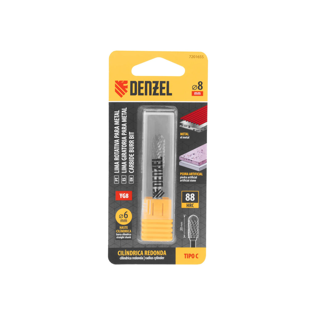 LIMA ROTATIVA CILINDRICA PONTA REDONDA TIPO C 8MM DENZEL