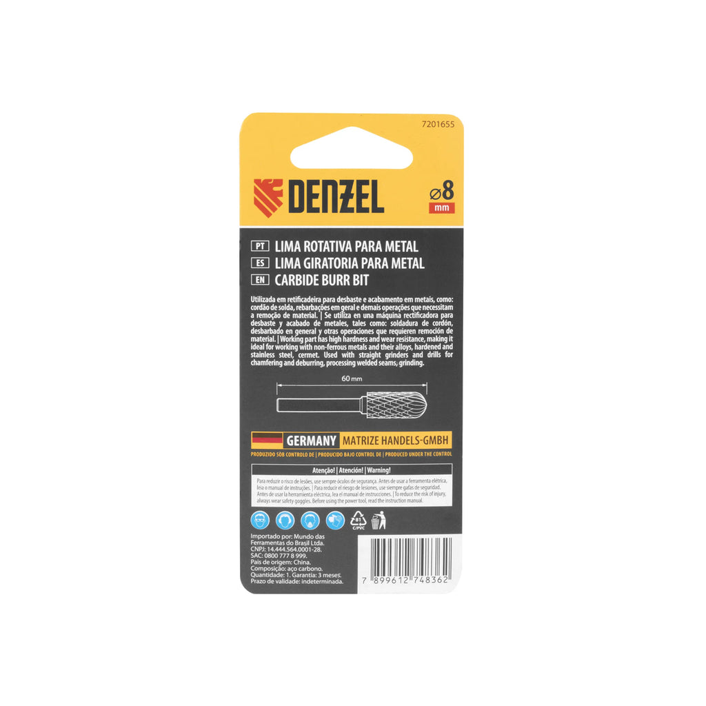 A lima rotativa para metal cilíndrica com ponta redonda tipo C de 8 mm da Denzel é uma ferramenta essencial para usinagem e acabamento de superfícies metálicas. Seu formato cilíndrico com ponta arredondada permite um desbaste suave e preciso, ideal para trabalhos que exigem detalhamento e contornos bem definidos.