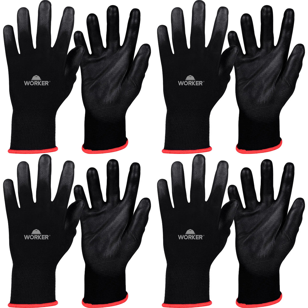 Kit com 6 Luvas Banhada em PU Touch WK29 Preta Tamanho G - Worker