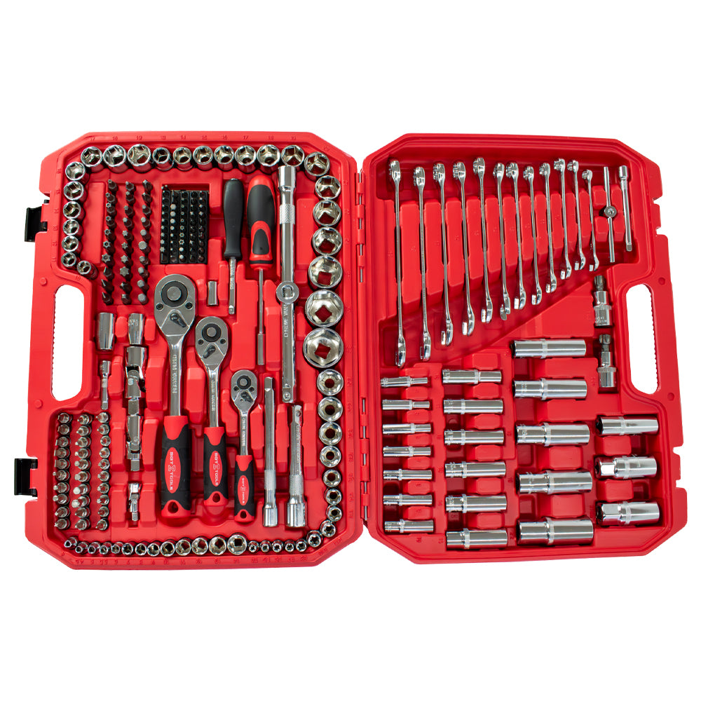 >Conjunto com 216 peças entre soquetes, bits, chaves e acessórios;
