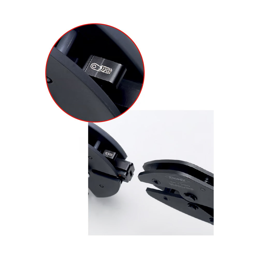 >Matriz 5 para terminais sem isolação tipo faston (macho e fêmea) nas bitolas de 0,5 a 6mm².Sistema de compartimento que evita a perda das matrizes, com sistema de fixação em cinto.